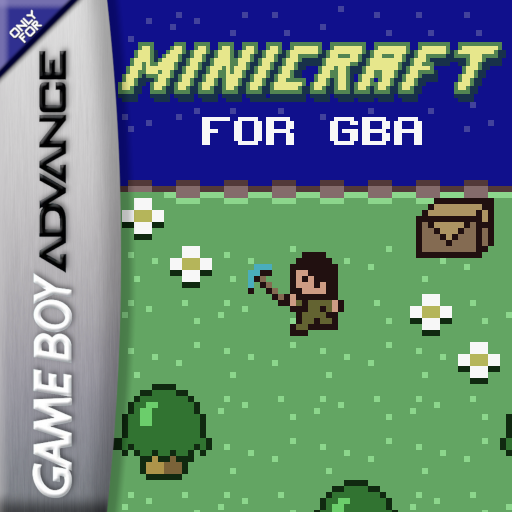 When a videogame is sold with a physical box, that box is decorated by an image that represents the game. Such image can also be used when publishing games online. Specifically for Game Boy Advance games, the box’s front side is square and has, to the left, a label indicating what console the game is for. For example, this is the box cover of ‘Minicraft for GBA’.